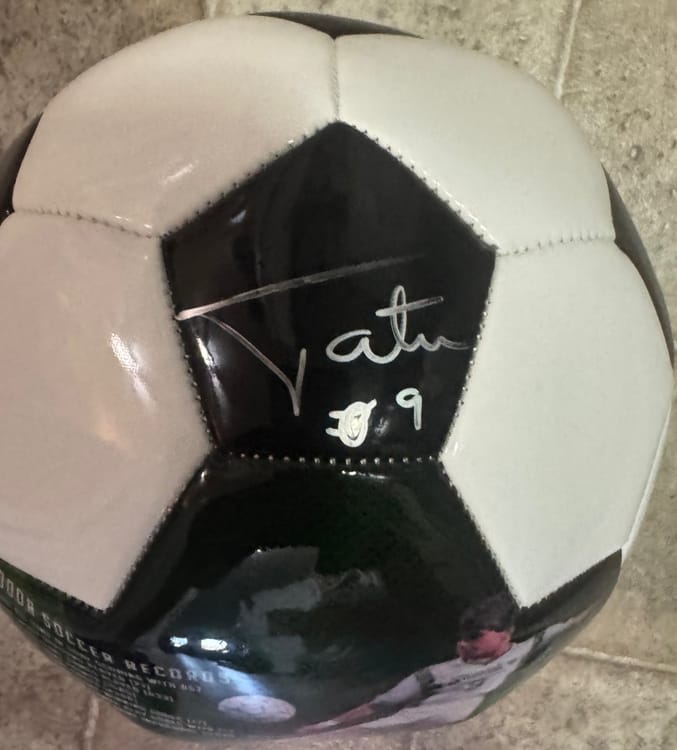 Signed soccer ball by Antonio Carlos Pecorari commonly known as Tatu. Brazilian football coach and former player, and one of the most accomplished indoor football players of all time.Tatu has many indoor soccer records. He is second all-time in goal scoring with 857. He has the second most seasons played (21). Only Victor Nogueira has played more with 23 seasons. He is seventh on the all-time list with games played (633). He is also second in points (1585), second in shots (4396) and second in game-winning goals (77). He is the leader in power play goals with 113. Tatu is one of 3 players to have won all 4 championships with the Dallas Sidekicks.