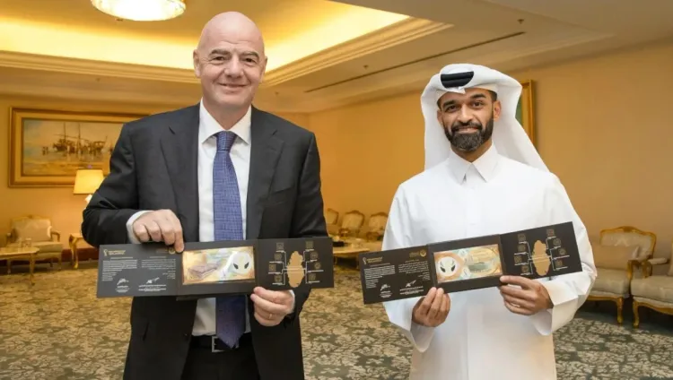 This commemorative banknote was announced by the Qatar Central Bank on the 9th of November 2022 in preparation for the 2022 FIFA World Cup in Qatar.